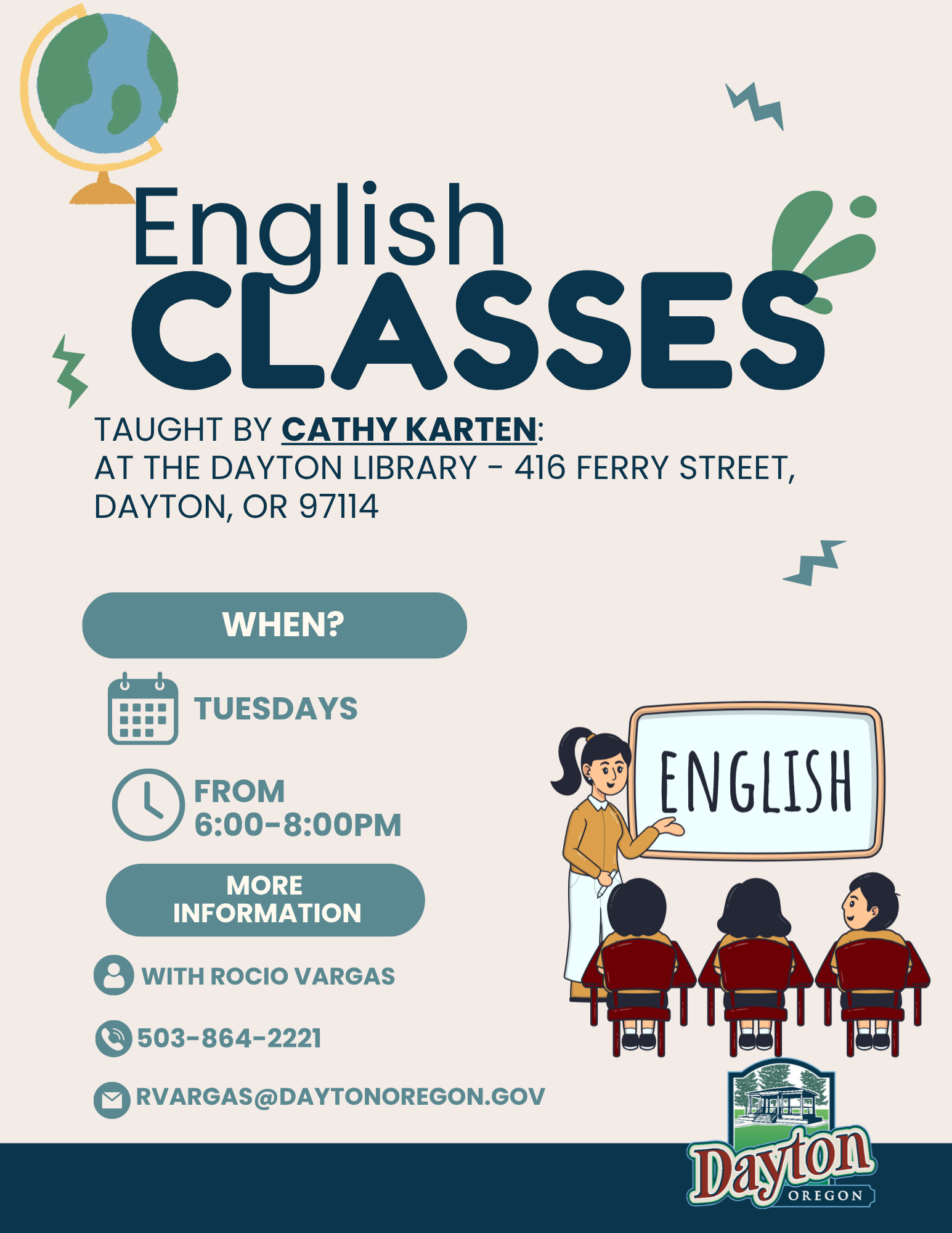 We're excited to announce that Cathy Karten will be leading English classes every Tuesday from 6-8 PM at the Dayton Library. Whether you're looking to improve your language skills or start learning from scratch, these classes are the perfect opportunity to grow and connect with others in a supportive environment.