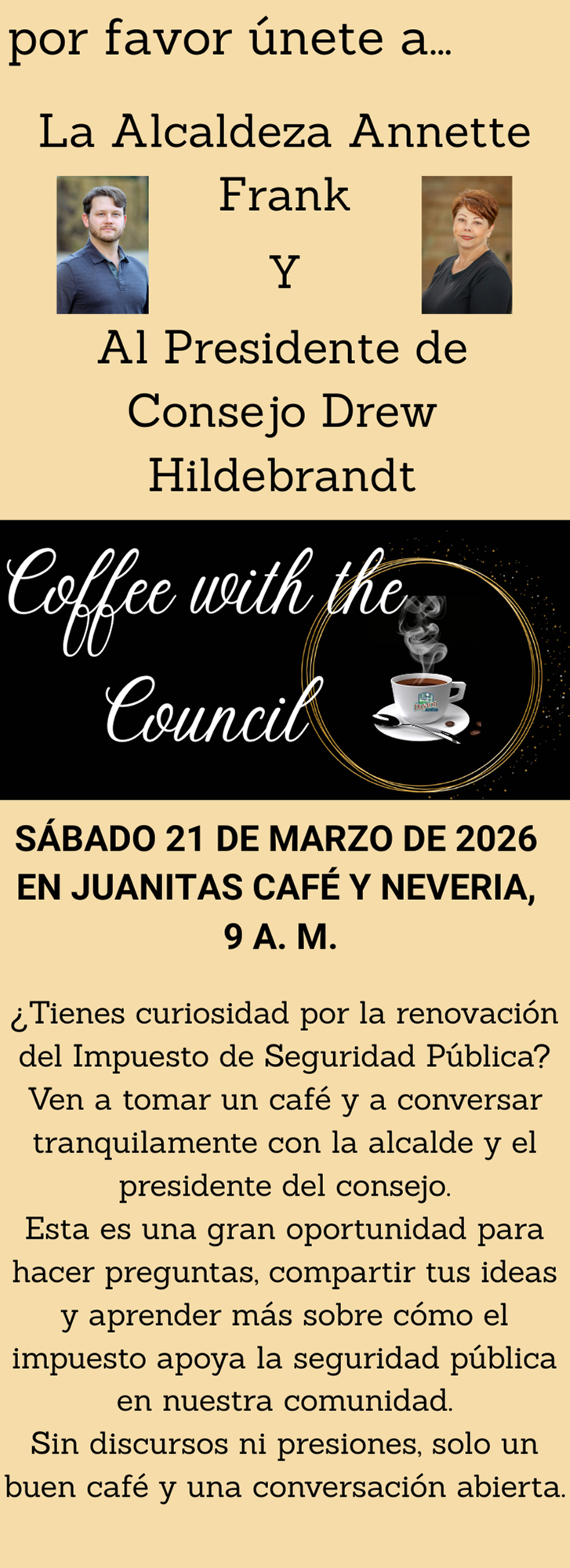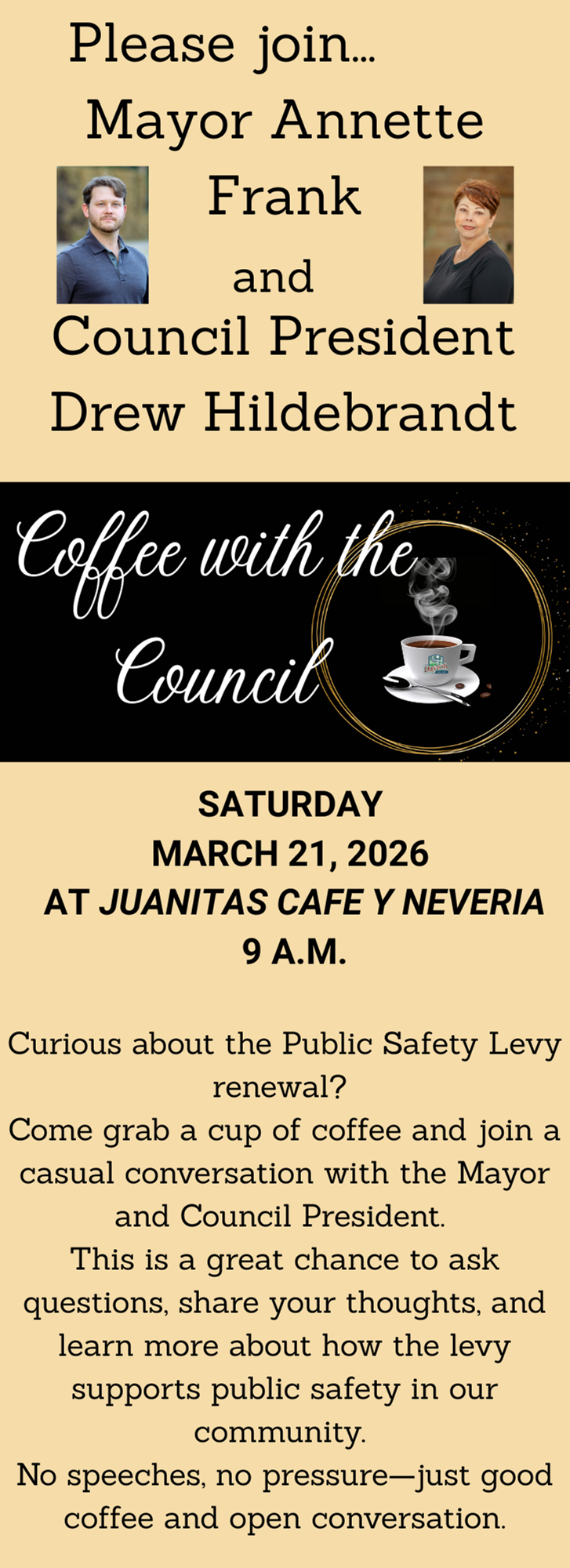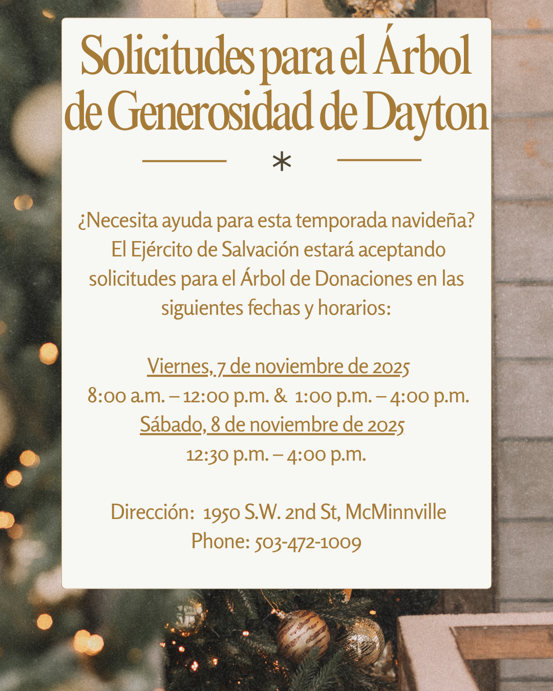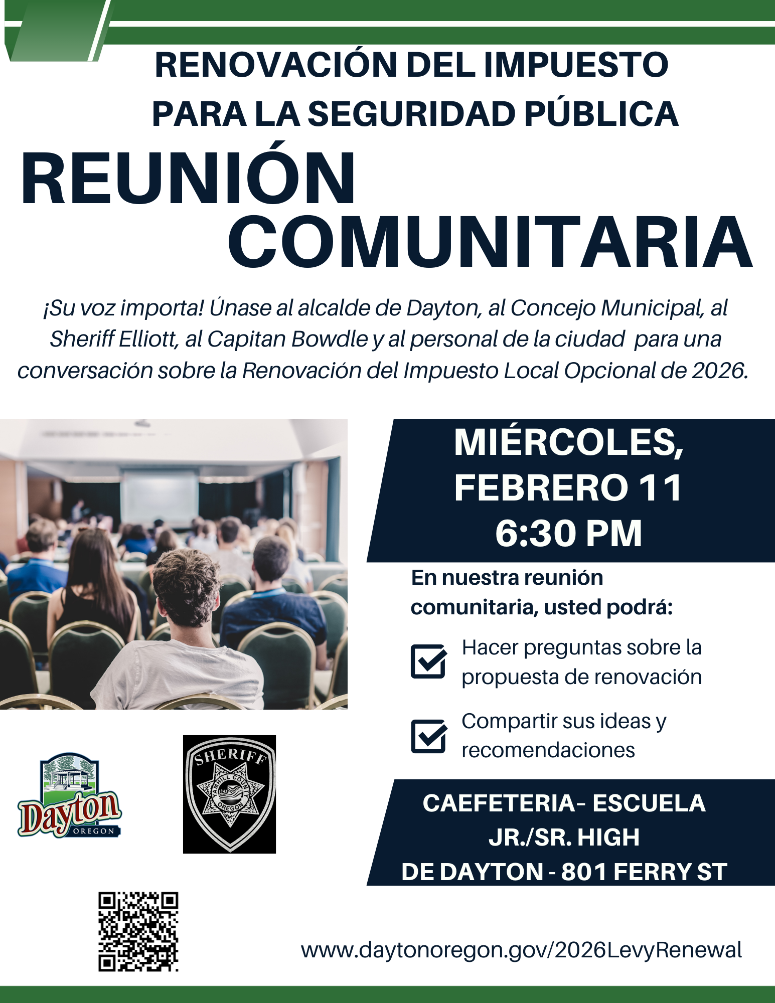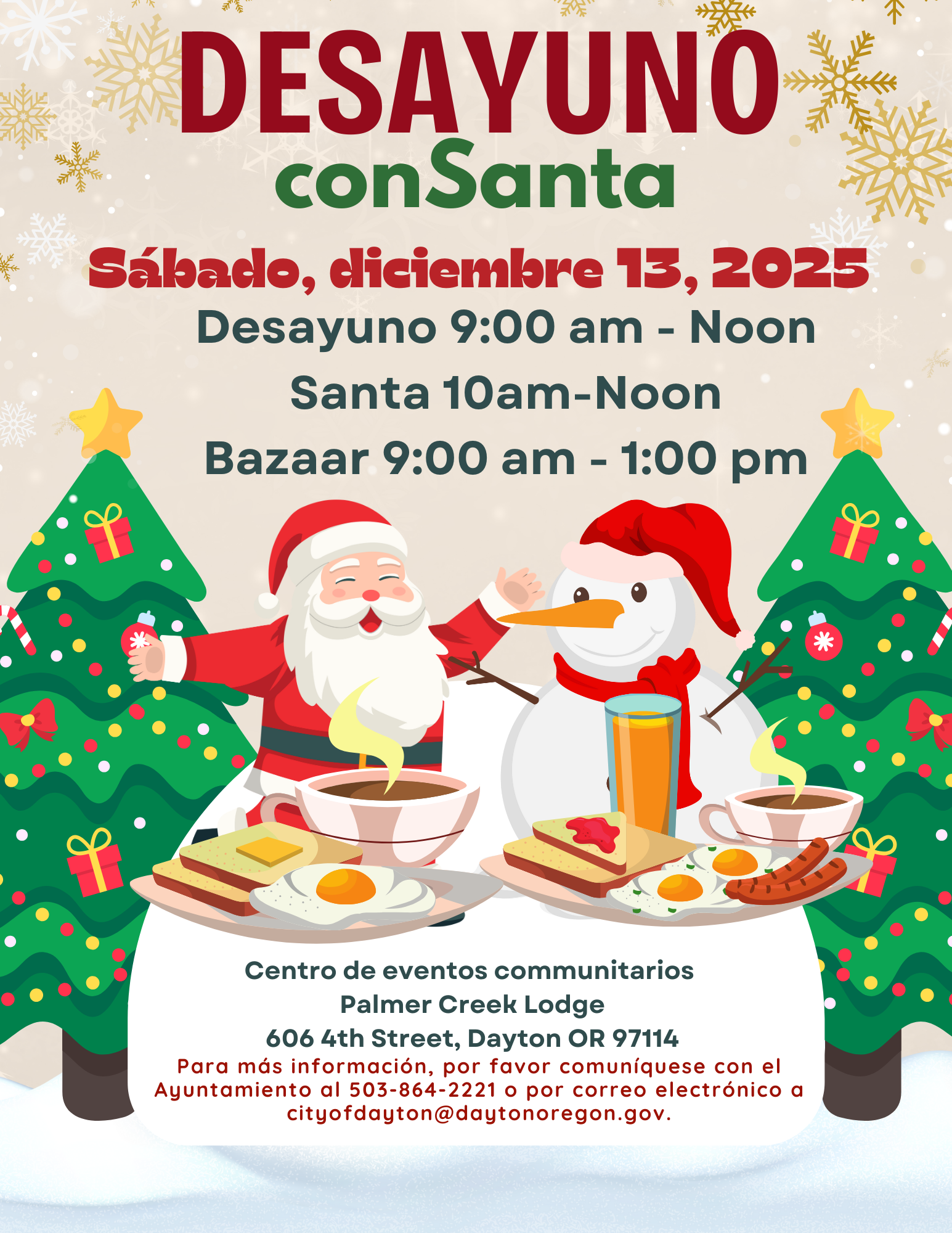 ¡Evento gratuito y familiar para la comunidad con hot dogs y hamburguesas preparados por su Alcaldesa y Concejo Municipal! La Ciudad se enorgullece de colaborar con la Oficina del Sheriff del Condado de Yamhill y el Distrito de Bomberos de Dayton para este evento. ¡Esperamos verlos allí!