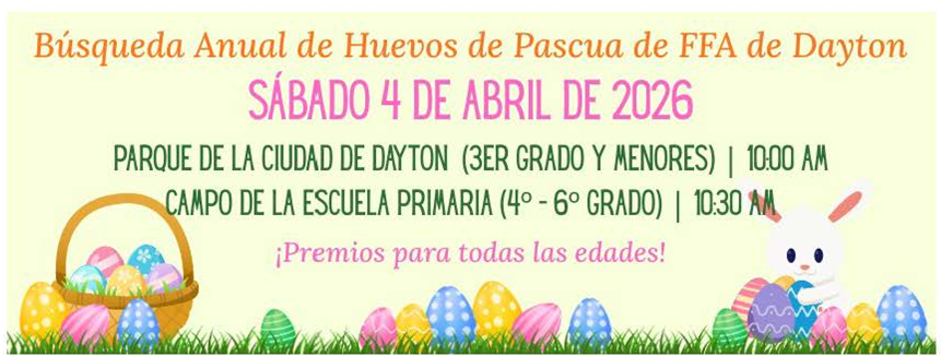 Nuestros amigos del Distrito Escolar de Dayton amablemente compartirán el estacionamiento de la escuela secundaria con la comunidad el sábado 10 de mayo, de 9:00 a.m. a 5:00 p.m., para quienes deseen realizar sus ventas allí. Quienes deseen usar el estacionamiento deberán traer sus propias mesas y asegurarse de retirar todo lo que hayan traído al final de la venta. Incluiremos el estacionamiento en los mapas de ventas de garaje de la ciudad.