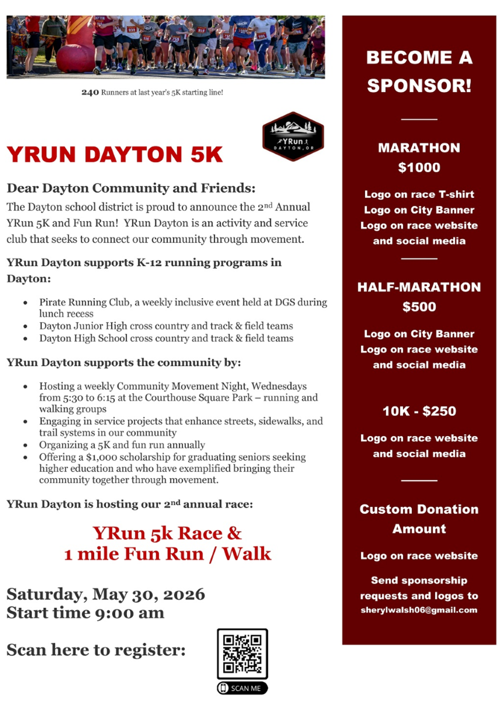 Thank you to the volunteers from the Dayton Events Committee, the Dayton School District and the Dayton Fire District for helping to make this event possible!